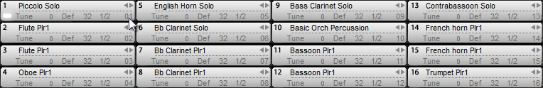 För orkesterpartitur, är det vanligt att kombinera flera stämmor på samma notplan — till exempel, Flöjt 1 & 2 delar ofta ett notplan. Du kommer att få det bästa resultaten från Garritan-instrument om du tilldelar två olika Garritan flöjtljud till samma notplan, en för Flöjt 1-stämman, och en för Flöjt 2-stämman — detta härmar effekten av två enskilda spelare med individuella ljud som tolkar varje stämma. Detta är särskilt viktigt om du vill att unisona (a2) passager skall låta som de utförs av två separata spelare. (Se avsnittet om Spelarvarianter för mer detaljer.)